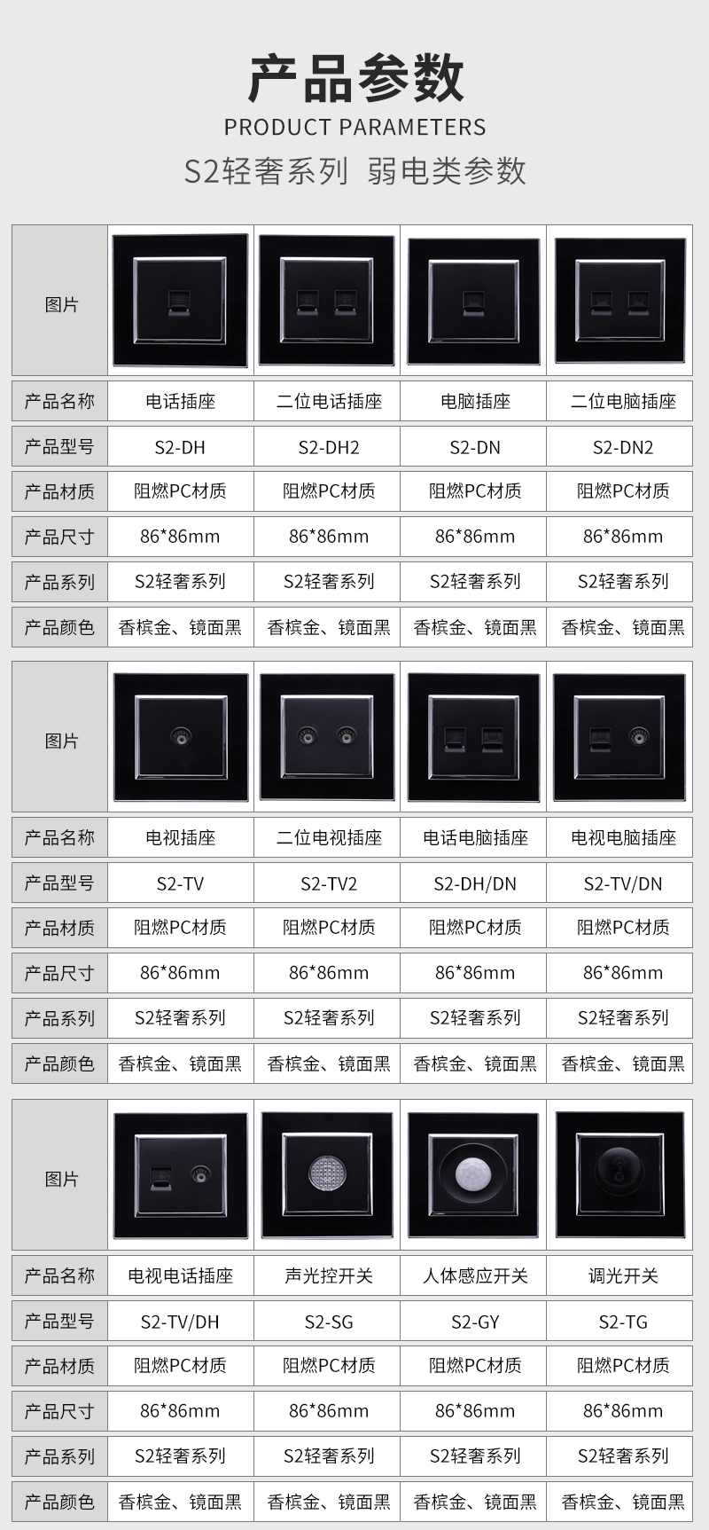 S2輕奢系列(亞克力)-弱電類開關插座