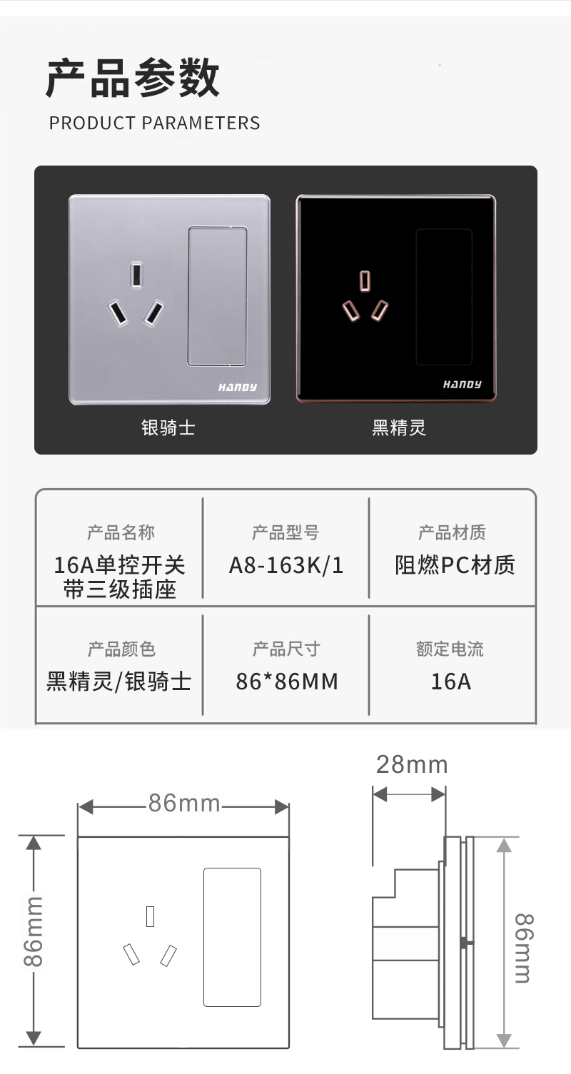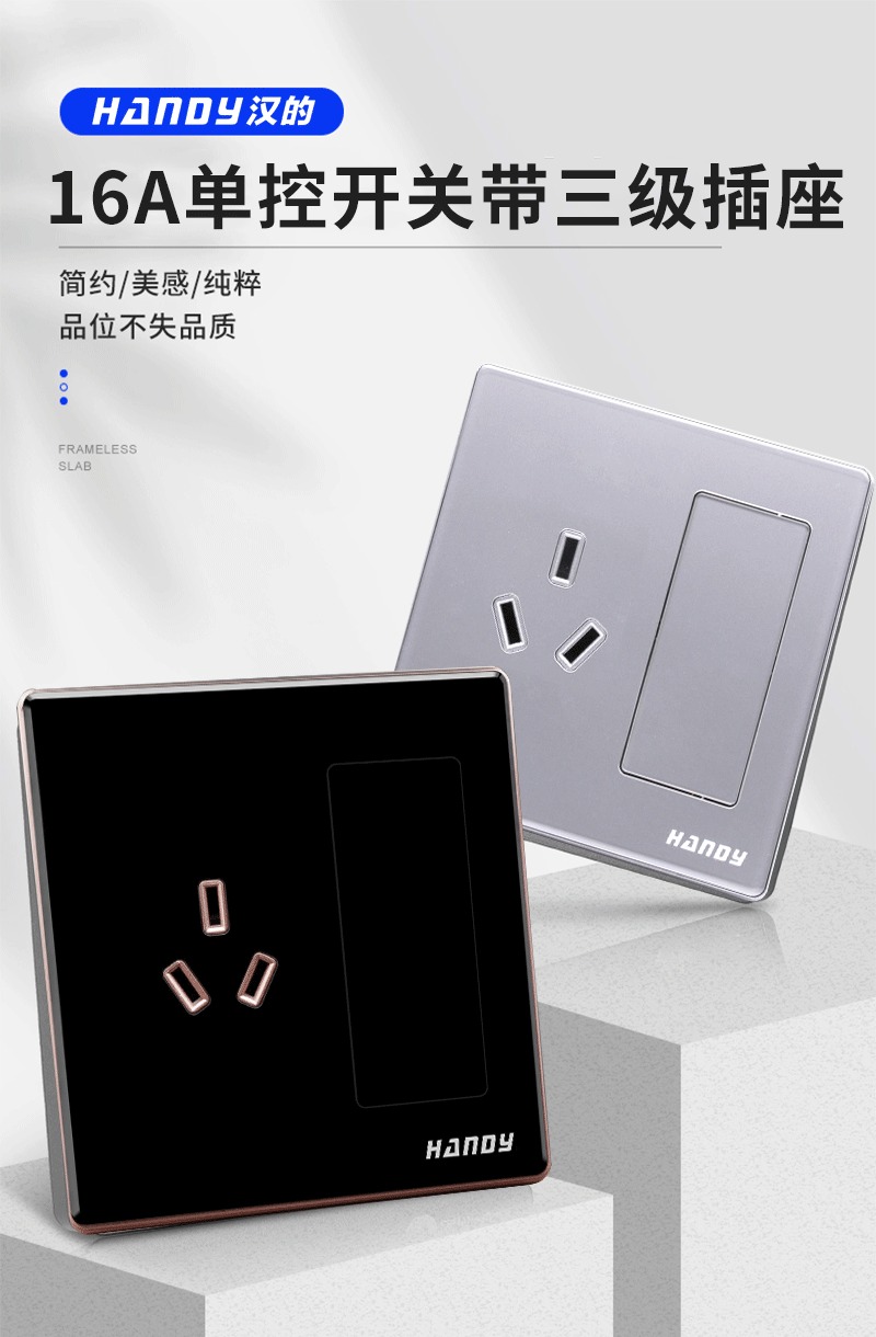 A8系列-16A單控開(kāi)關(guān)帶三級(jí)插座