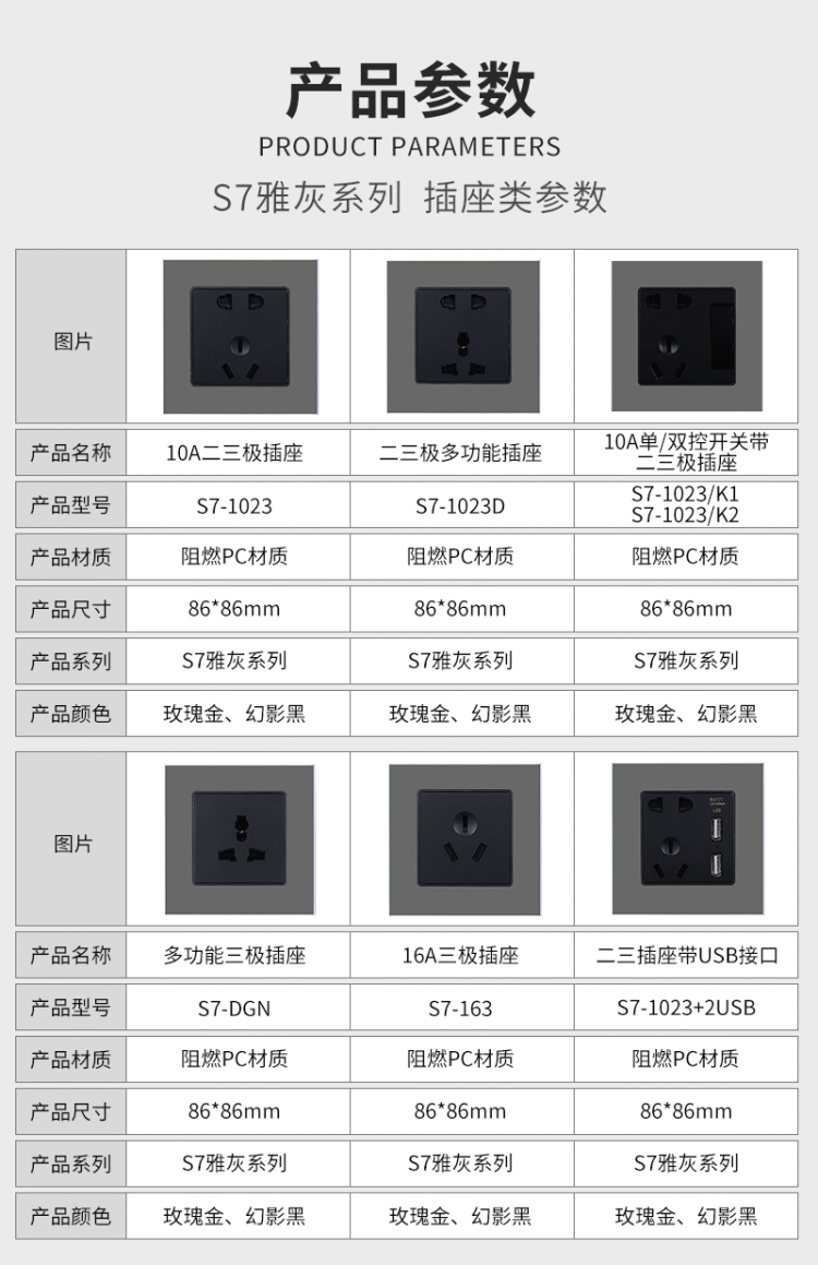 S7雅灰系列插座類