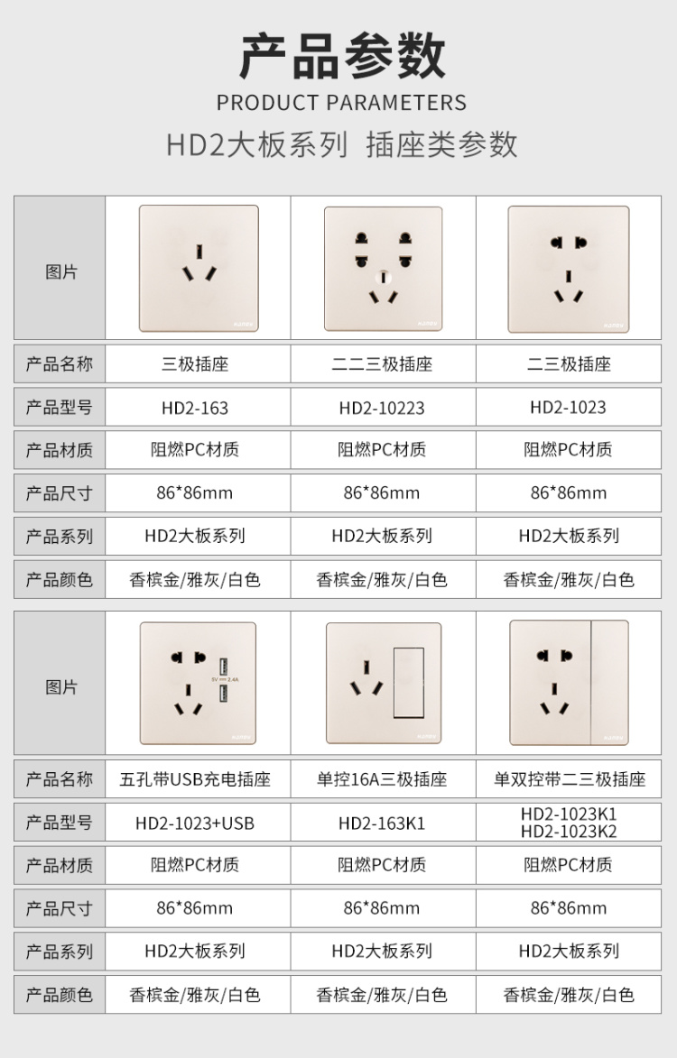 HD2大板系列-插座類