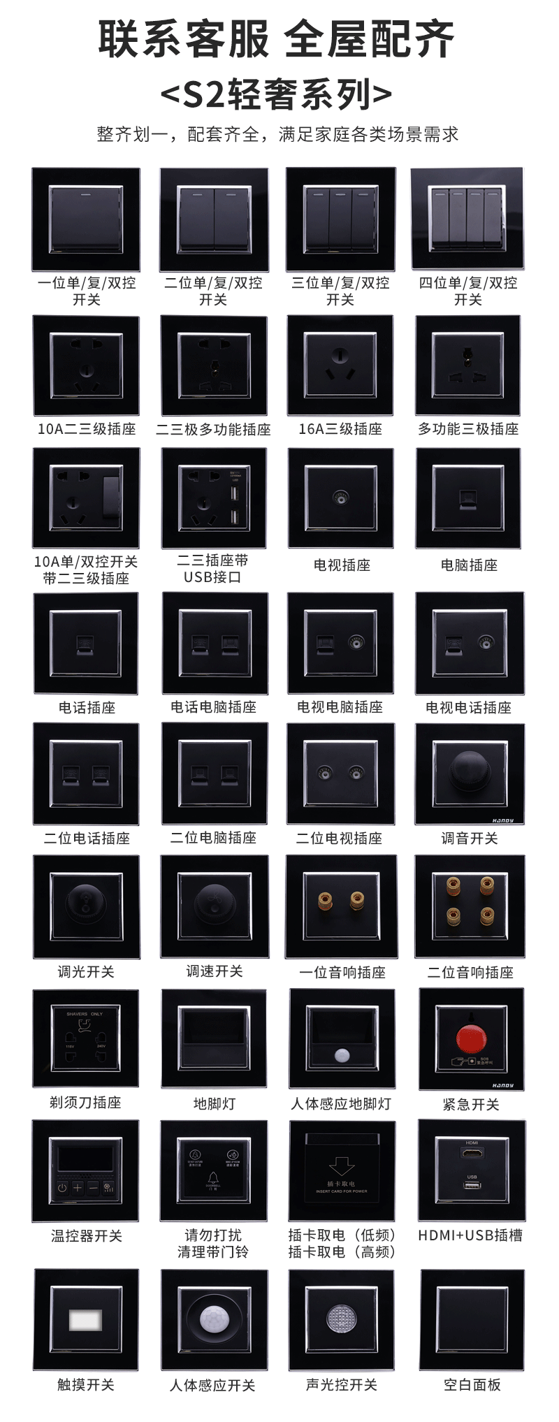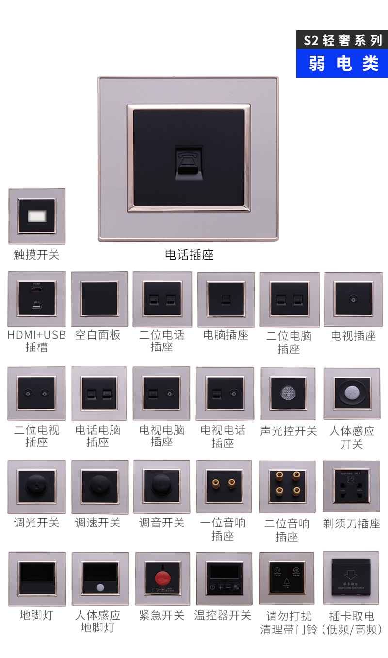 S2輕奢系列(亞克力)-弱電類開關插座