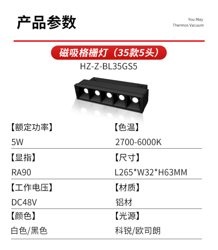 35智能款5頭折疊格柵燈-10W